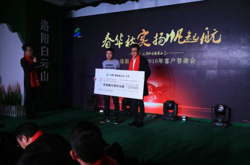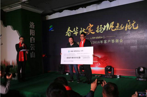 本次答谢会,白云山景区为2016年白云山发展做出突出贡献的合作伙伴颁发了最具潜力奖、最佳伙伴奖、最佳合作奖、特别贡献奖,并授予河南百事通国际旅行社有限公司“战略合作伙伴”;会上为洛阳大自然旅行社有限责任公司等5家合作伙伴颁发了上百万的奖金支票,让来宾见证了白云山的诚信和实力;会上举行了签约插旗仪式,寓意2017年白云山与合作伙伴携手并进,再攀高峰,再创辉煌;会上进行了欢乐的抽奖仪式,白云山为3组30个幸运伙伴送出了价值百万的奖品。劲歌热舞,魔术相声等文艺节目穿插于活动中,处处洋溢着欢乐的气氛。