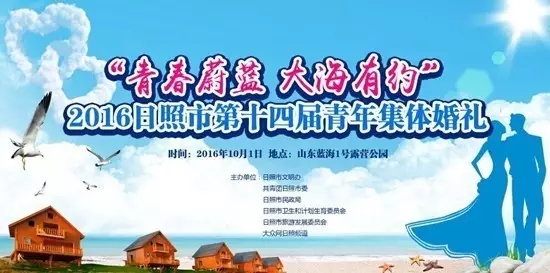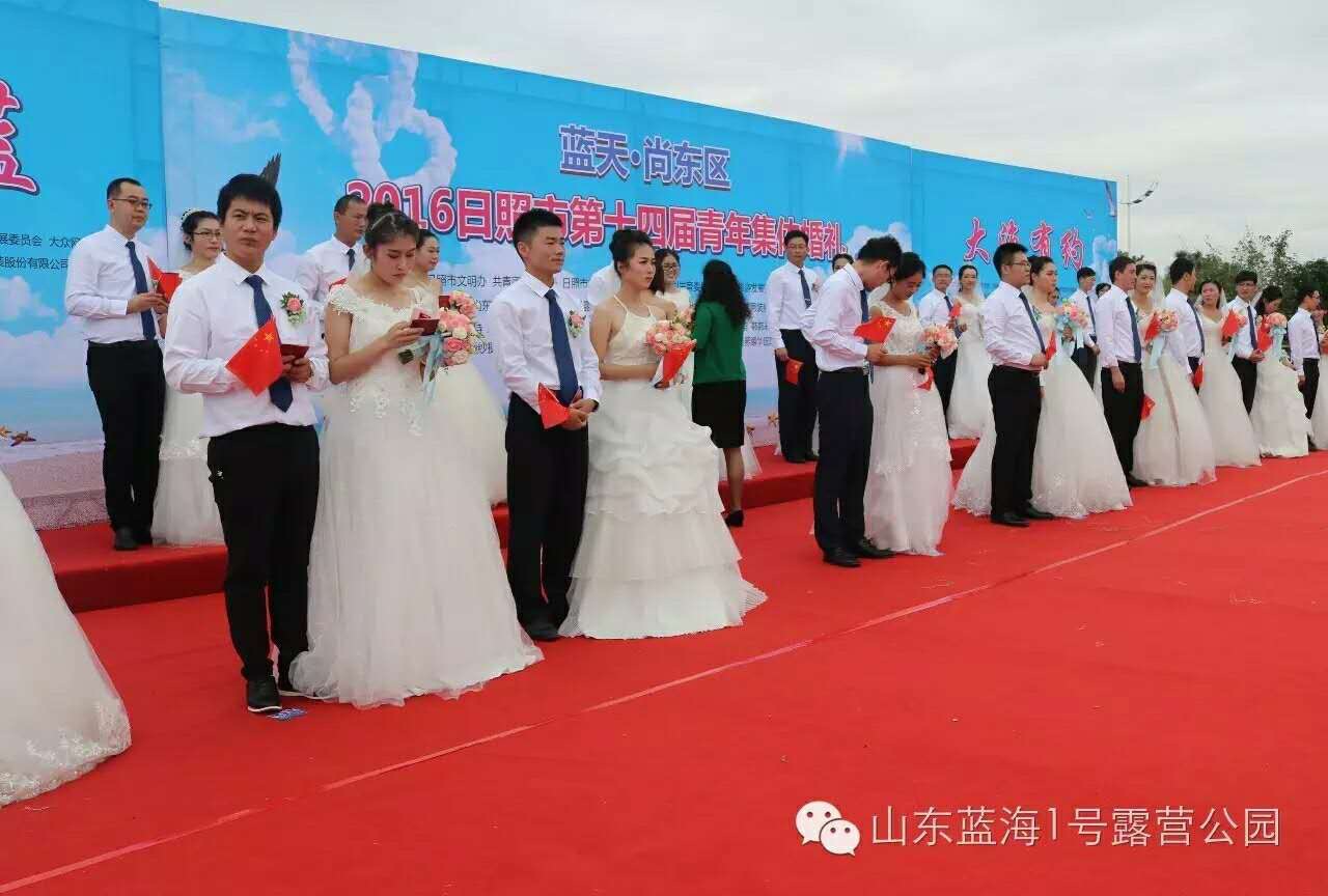 10月1日上午,由日照市文明办、共青团日照市委、日照市民政局、日照市卫生和计划生育委员会、日照市旅游发展委员会、大众网日照频道主办的“青春蔚蓝 大海有约”2016日照市第十四届青年集体婚礼将在山东蓝海1号露营公园举办。