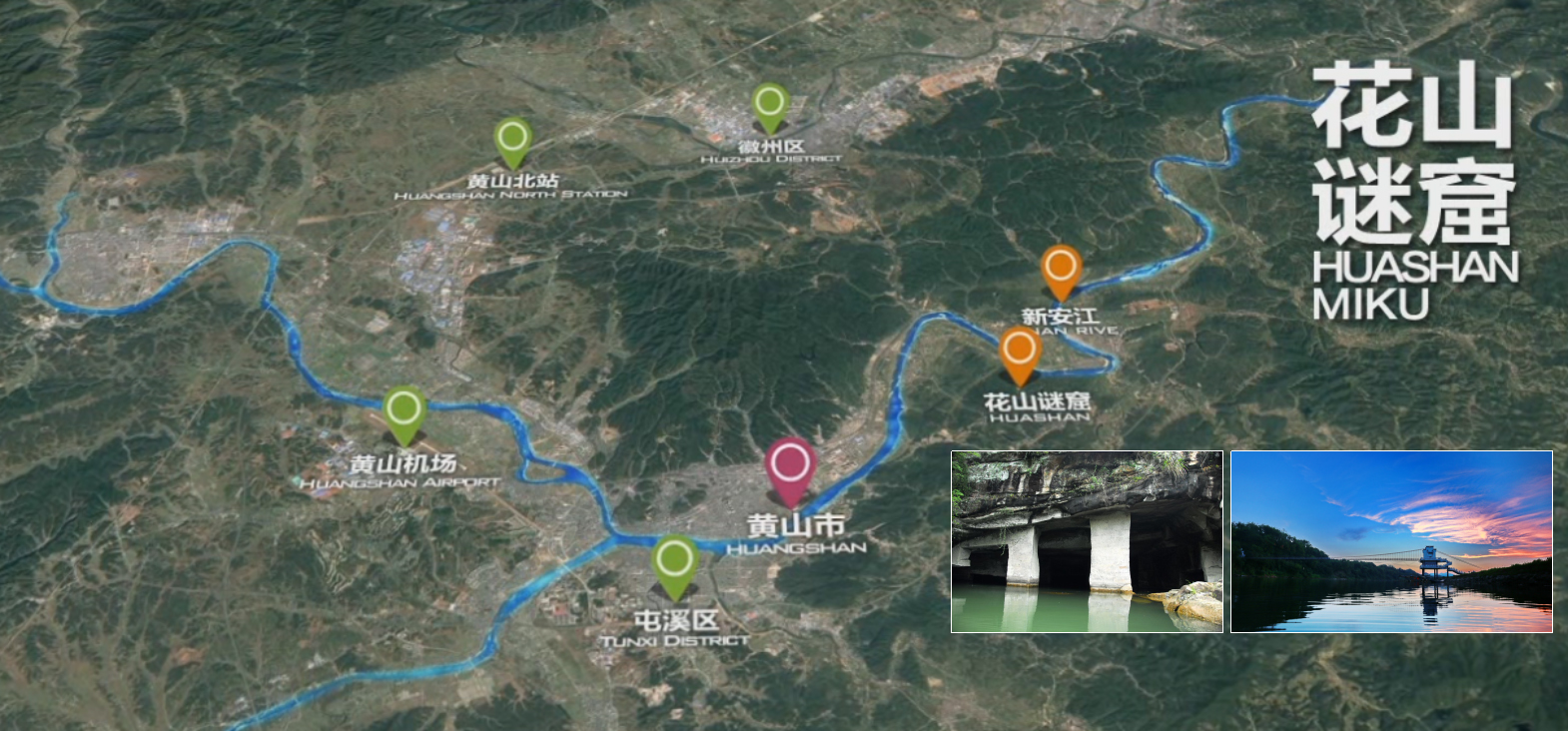 花山谜窟风景区地处黄山市中心城区东郊,距市区8km,面积20.62km²。景区毗邻新安江,以千年谜窟为核心看点,搭配山、林、湖、村资源,2000年对外营业,发展观光旅游,目前已是国家级重点风景名胜区、国家4A级旅游景区。