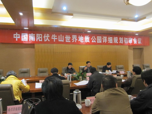 规划初审会由南阳市国土资源局副局长张国建主持,市长助理王中,市发改委、市国土资源局、市交通局、市规划局、市林业局、市旅游局、市文化局和西峡县、内乡县、南召县、卧龙区、宛城区以及公园下属的各个景区共40余人参加了初审会议。评议人员在听取了规划组的详细汇报后,一致认为“该《规划》基础工作扎实、编制思路清晰、技术路线正确,对南阳伏牛山世界地质公园中西峡、内乡、南召三个园区的九个景区、五条科考线路进行了详细的安排部署,内容全面,布局合理,规划成果具有较强的科学性,取得了预期成果。”