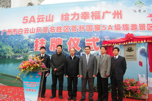 2011年3月18日上午,白云山风景名胜区管理局在云台花园正门广场举行了“5A云山,给力幸福广州——广州市白云山风景名胜区晋升国家5A级旅游景区挂牌仪式”。广州市常务副市长苏泽群,广东省旅游局张振林副局长出席了挂牌仪式,并为牌匾揭幕。