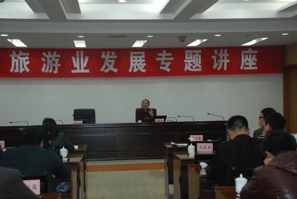 2012年11月27日,为深入贯彻落实全市旅游业发展大会精神,更好地打响旅游业发展战役,浙江省衢州市衢江区区委、区政府举办了全区旅游业发展专题讲座,特邀请公司董事长杨振之教授作《文化产业和旅游产业融合发展》专题报告。
