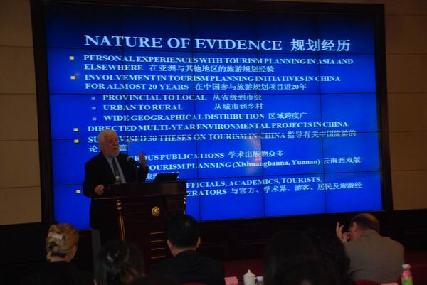 加拿大滑铁卢大学的Geoffrey Wall教授结合自己对中国旅游的长期关注,作了“关于中国旅游规划的思考”的报告。他认为,中国的旅游规划目前存在很多问题,需要进行冷静思考做出因地制宜的决策,这对中国目前鱼龙混杂的规划业很有指导意义。