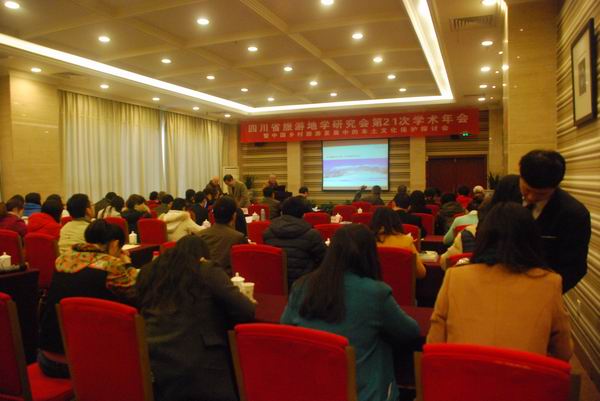2014年11月26日,“四川省旅游地学研究会第21次学术年会暨中国乡村旅游发展中的本土文化保护研讨会”在四川成都蜀兰大酒店召开。会议由四川旅游地学研究会、成都杨振之来也旅游发展有限公司、四川大学中国休闲与旅游研究中心、国际休闲度假学会、四川省对外友协以及德国艾伯特基金会共同组织,来自四川省地矿局、成都城市河流研究会以及全省各大高校、科研、管理等领域从事旅游地学研究和旅游资源开发与管理的专家和学者50余人参加了会议。